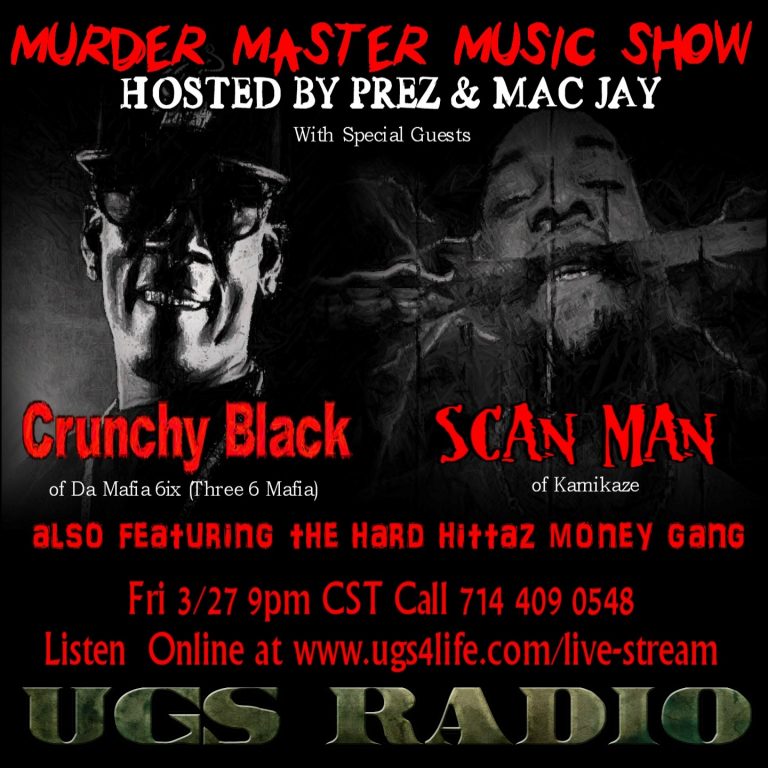 Even though he has been on the run according to TMZ, Crunchy Black of Da Mafia 6ix (Three 6 Mafia) was on the Murder Master Music Show to chop it up with Prez & Mac Jay on Friday March 27th. During the interview Crunchy spoke about his new mixtape, the new Mafia 6ix album, Juicy J, Lord Infamous and much more.