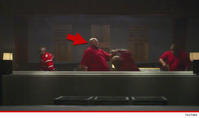 As for what Suge was so worried about — a new trailer for the movie was just released, and there is a character whupping someone’s ass in a studio … who looks just like Suge.