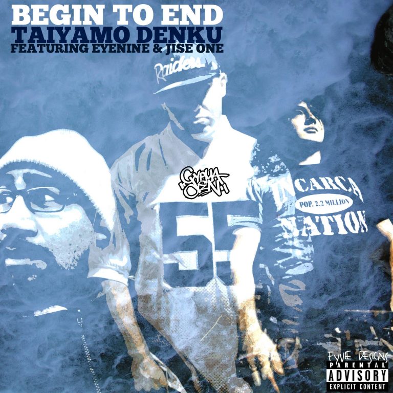 When looking at the history of these 3 emcees gathering together, you have to channel all the way back to when hip hop still was about lyricism crafting together concepts to make your mind do flips when listening. The new single by Taiyamo Denku does just that. The Milwaukee native CyphaDen outfitted emcee recruits his long time collaborator , Creative Juices & Arsonists emcee , Jise One & New England’s representation of what hip hop should sound like, Eyenine. The song begins with Jise One giving shouts to Denku in an intro that turns into a witty, very original stylized verse that flows from one idea to the next, all washing your thoughts to the idea of how you Begin and End. Eyenine has a very original style and though you might have a hard time keeping up with the flow of his verse he packs so much information and lyrics in his verse that will leave you replaying it over and over again. Denku closes out the song with a street heavy , grimy bar worked verse the strength of his voice alone draws you into the images his lyrics create. Dcypha crafts a movie type feel with his production on this, the changes from the verses to the hook set the tone of the concept of the songs entirety. Don’t miss the newest CyphaDen music release.
