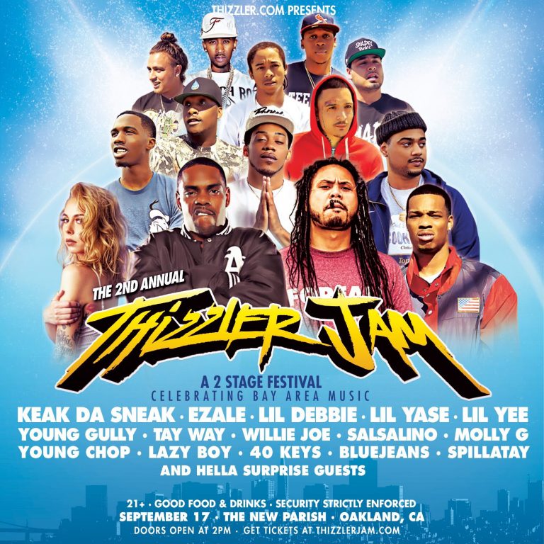 Thizzler Jam, which first started in downtown Oakland in August of 2015, is a celebration of Bay Area hip-hop that aims to showcase promising local acts with growing fanbases. Besides one performance slot that is reserved for a contest winner (this year – Spillatay), every year the entire lineup is hand selected by the staff at Thizzler.com based on talent, buzz and potential. By putting so many rising acts on the same bill, fans who may know one or two artists are exposed to other local artists they might like and leave with a few new songs to add to their playlists.