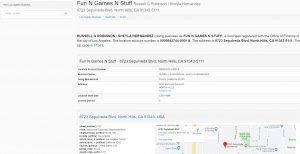 HERE'S A SCREEN SHOT OF A STORE CALLED "Fun N Games Stuff" THAT THEY BOTH USED TO OWN BACK IN 1998, IT WAS LOCATED IN North Hills, California, BUT WAS LATER CLOSED DOWN LIKE IN 2013. REGISTER OWNERS ARE: Russell G Robinson / Sheyla Hernandez