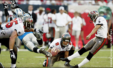 I watched that shit that's fucked up they blocked him 3 times. This game could've went either way but tha Buccs were playing sloppy as hell, plus all those penalties hurt them bad. But I'll give it to tha Panthers tho, they fought back till tha end!!!!!