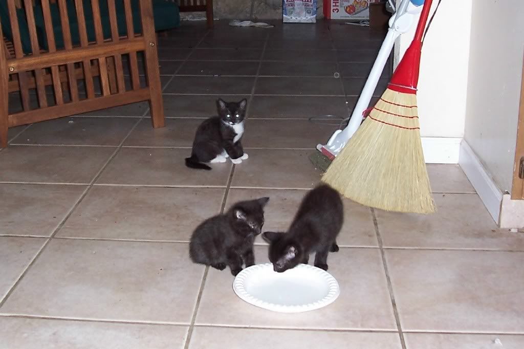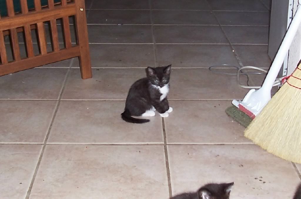 There are two sets of twin kittens, all black and black and white 'tuxedos'..I don't know if they are boys or girls, and they most likely will be small cats with short hair. I wouldn't charge someone for tehm, as long as you weren't gonna use em to train pits or test cosmetics! If that was the case, it would be $25 each......LOL....j/p!
