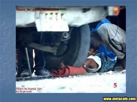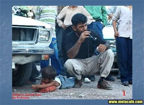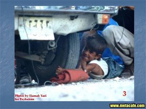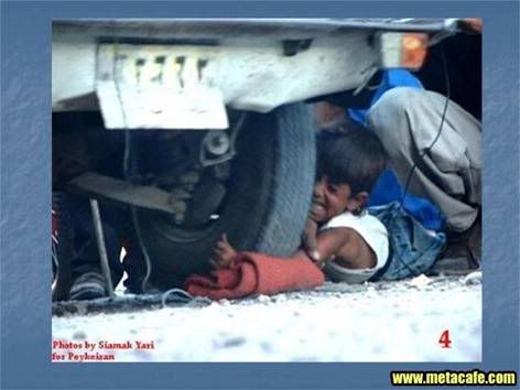 I'm not usually into defending Middle Eastern "policy", but I've seen people run over by trucks with nothing but boards on them for the truck to use as a ramp. That kid, I would bet, is fine. He's got padding underneath his arm... I know it doesn't look like much, but I mean, I find it strange that they don't have a pic of the horrible aftermath, which was probably just the kid getting up and the crowd cheering because it was just a stunt. They're probably just looking for some change.