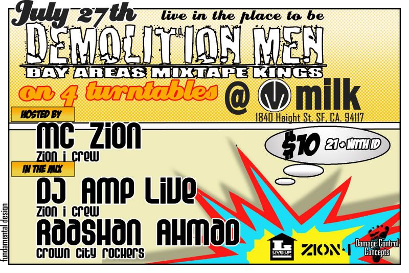 the Zion I Mixtape has been pushed back til july 31st. It will be available first at the Mixtape Release Party this friday at Milk on Haight st. with a live performance with Zion I and special guests. the place isnt that big so it will fill up fast!
