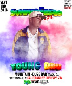 Young Dru will be performing live This Saturday Sept 3rd at Califesto 2016