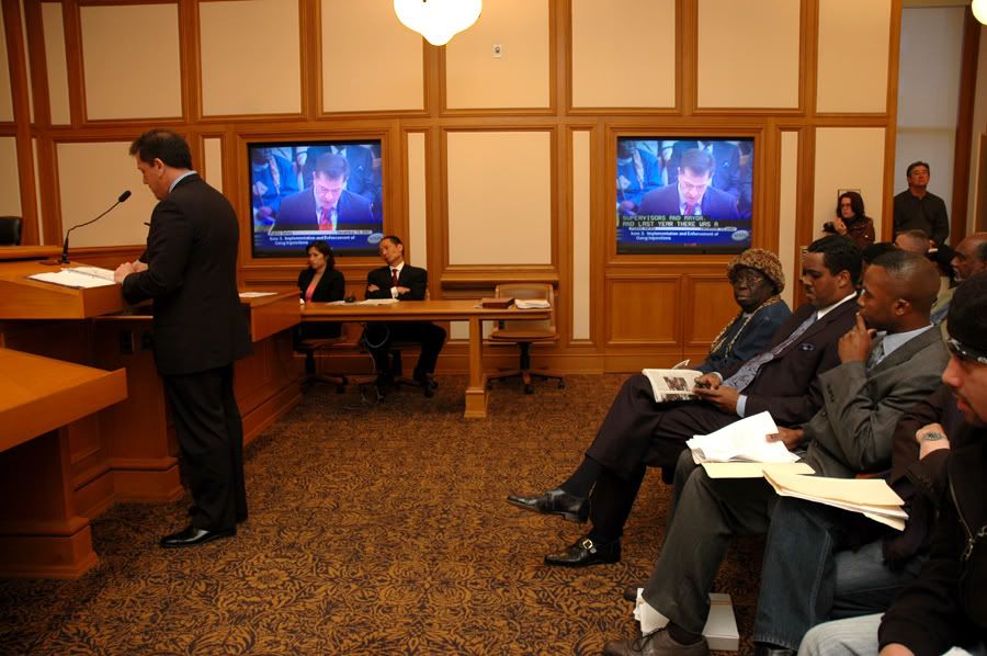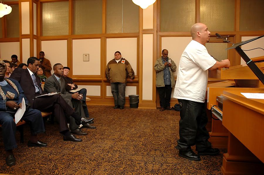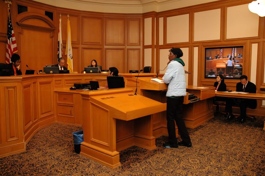 turnout was great, we had about 150+ people come out (cbo's, community members, some folks on the injunction list, public defenders office, ACLU, DCYF & other government officials) we packed the little room so they had to make an overfill room (fire hazard bullshit) - City Attorney Dennis Hererra backed out last minute and sent a representative from his office to speak to the board of supervisors..bitch ass Dorsey who stuttered and couldn't answer not one question correctly (white man at the end of the pics)