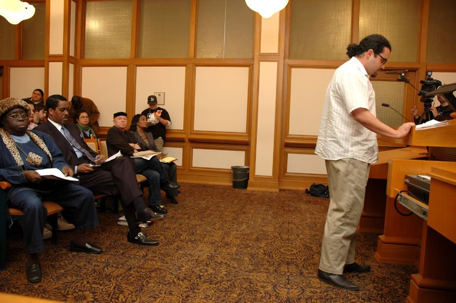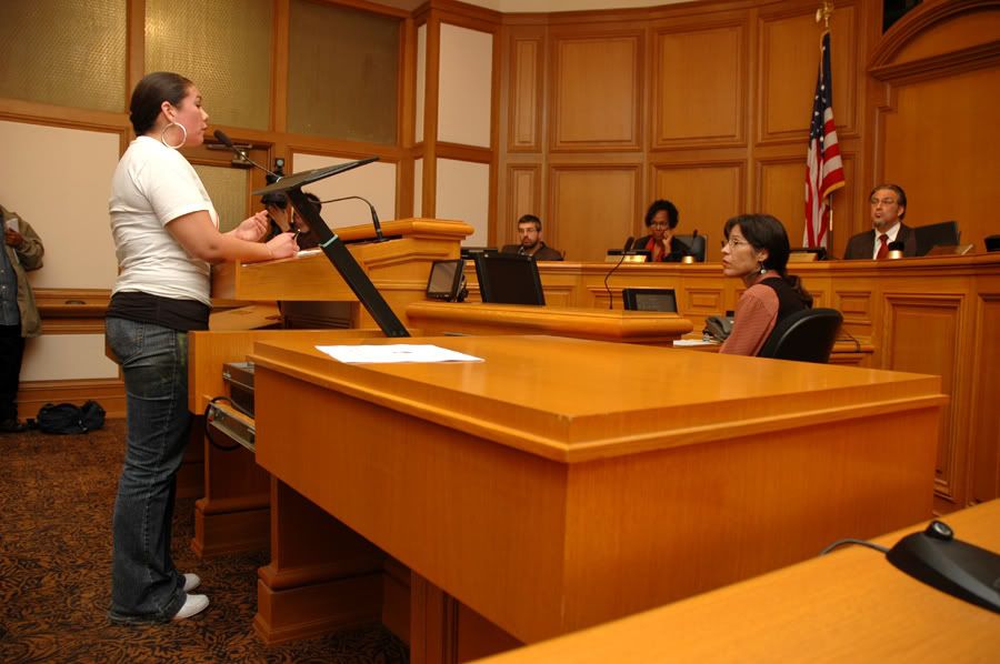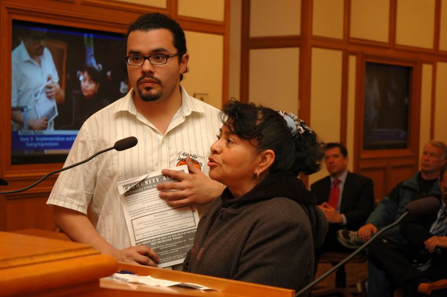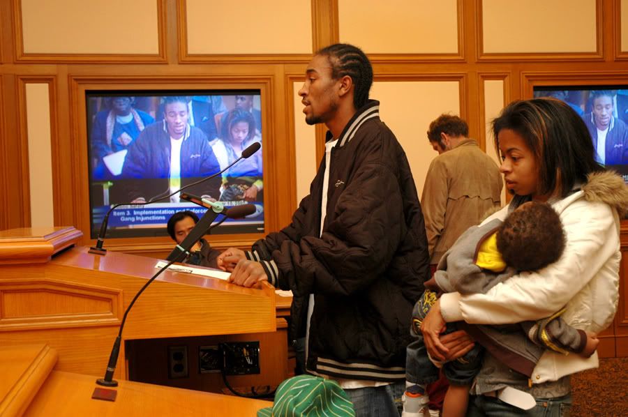 some of the people who spoke included a woman from the bayview who on Thanksgiving day had her family over and her nephew happened to be on the list, so the gang task force went into her house uninvited while she was in the shower and held her kids down at gunpoint - when she came out the shower without knowing they were in the house they told her to put her hands up at gun point naked in front of her children