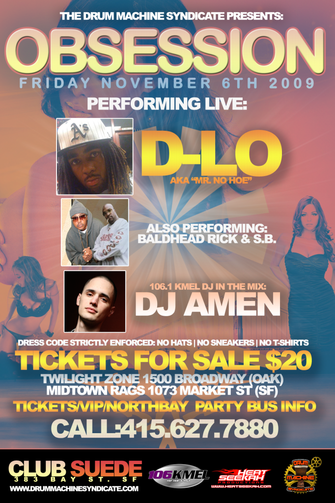 THE DRUM MACHINE SYNDICATE PRESENTS:D LO,BALDHEAD RICK & S.B. PERFORMING LIVE NOV 6TH COME OUT IN SUPPORT UR FAM BAM!!!!!!!!!!!!!!!!!! Oh yeah Hunger Pains & All or Nothing 2 solo projects coming soon!!!! Krypto & S.B. new album Covering Grounds coming 2010!!!!