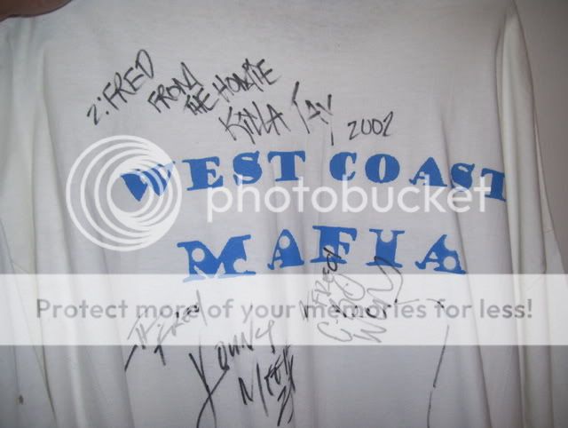 I'm just fucking around Tay. I feel you on what your saying a well. That time I met you and Bo, I went out and bought the actual Cd's. I still own them to this day (still clean). Still got that West Coast Mafia t-shirt signed by all of you. Do I hear an offer from anybody on the Siccness? LOL!